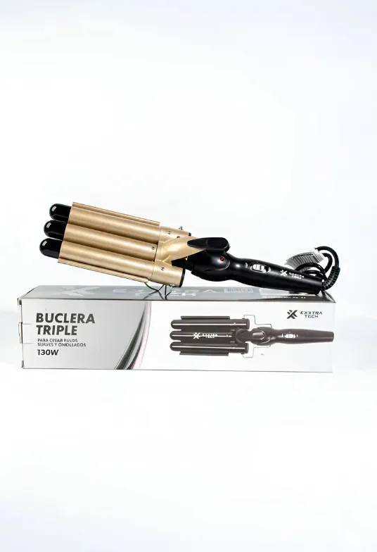 Exxtra Tech Buclera Triple – Para Crear Rulos Suaves y Ondulados 130W